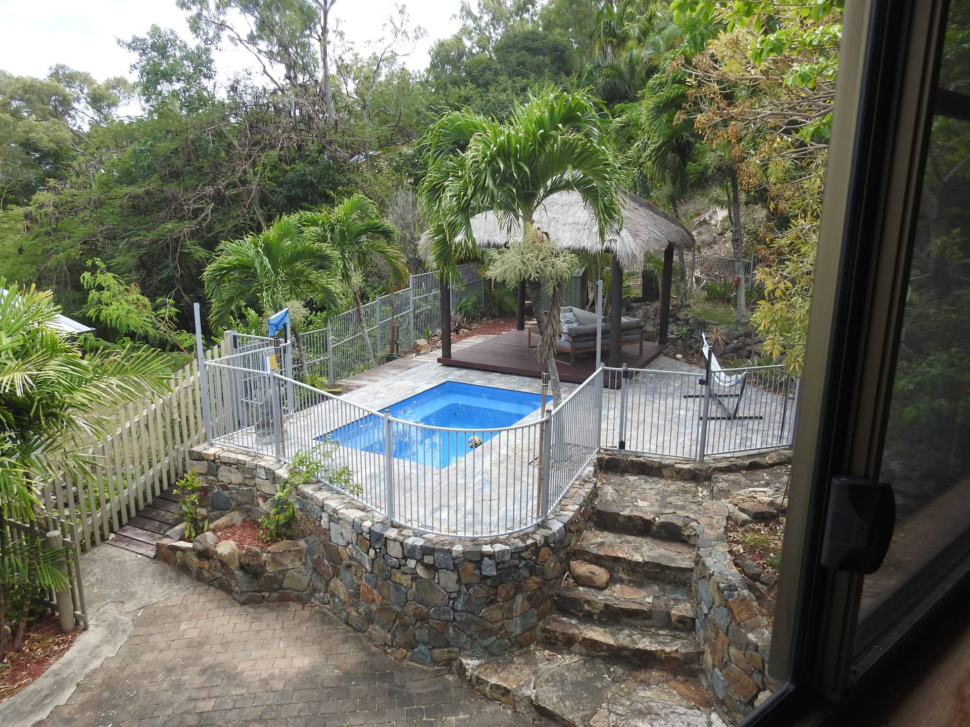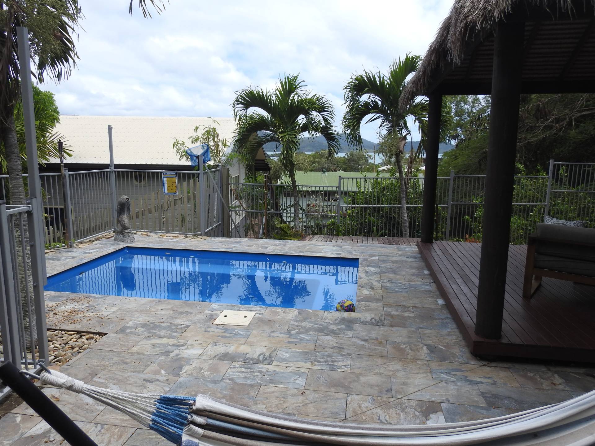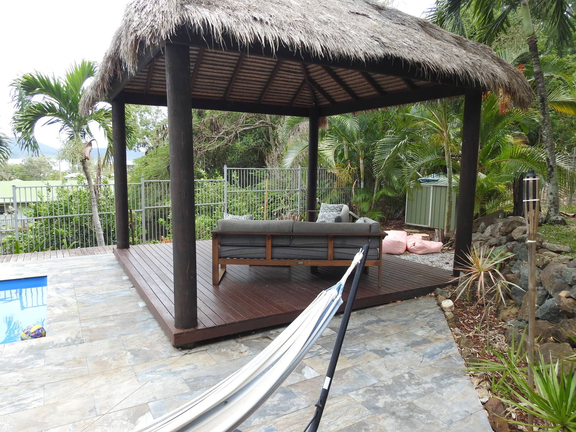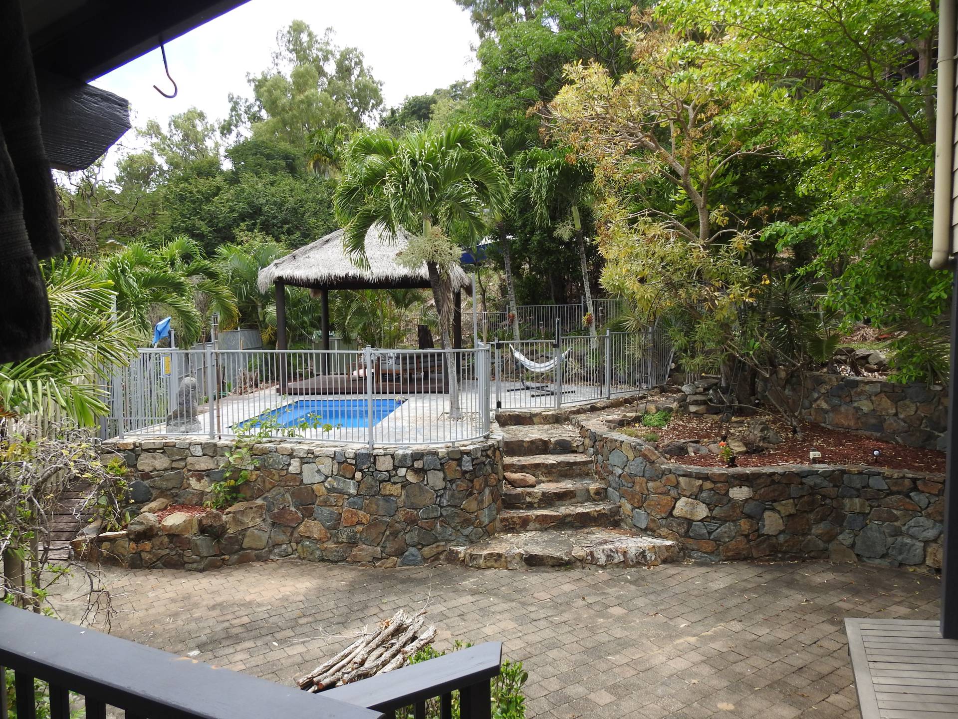 With tropical style gardens throughout the property, yard maintenance is minimal. Leaving more time to enjoy the in-ground pool gazebo area and wonderfull views.