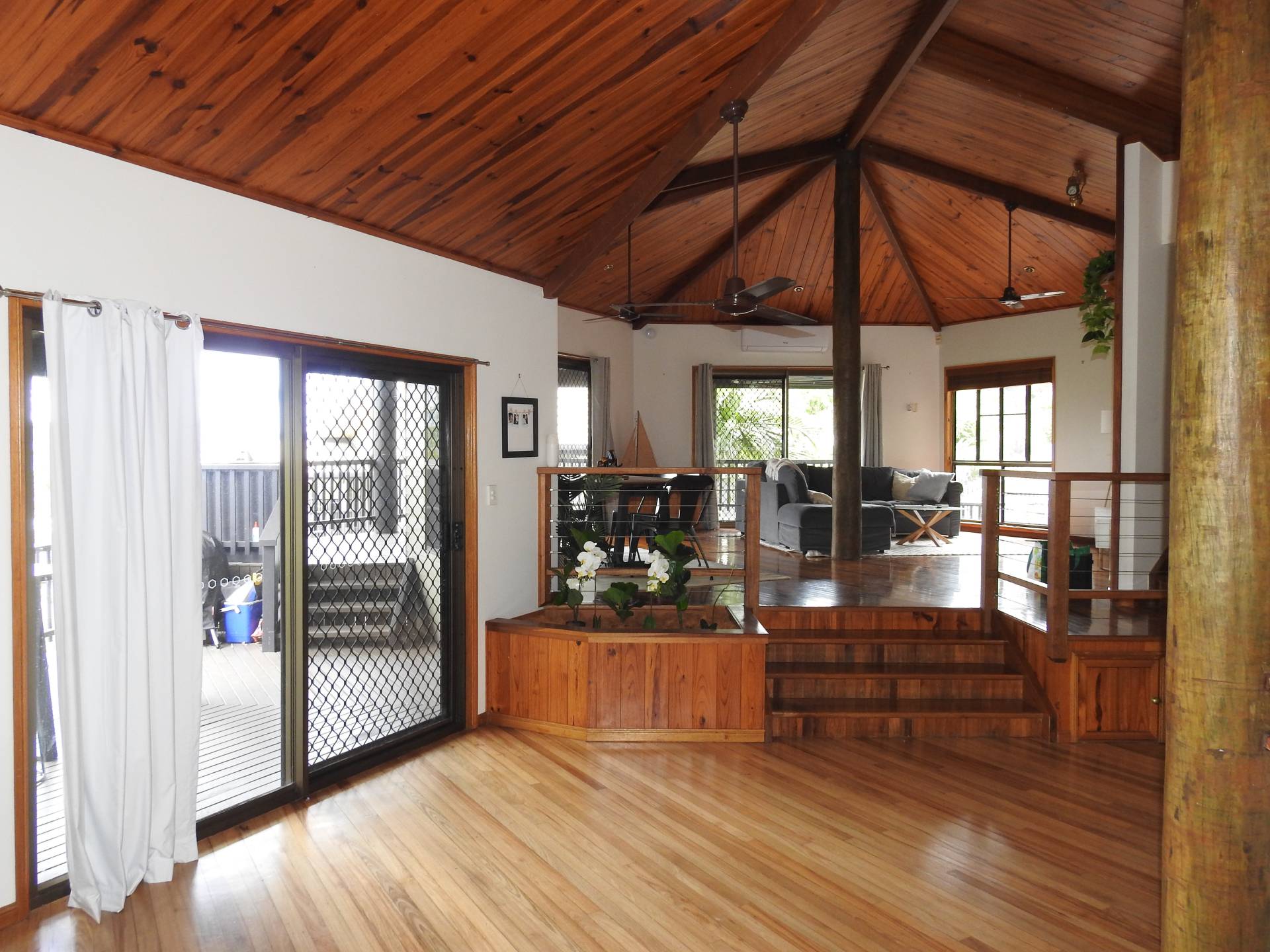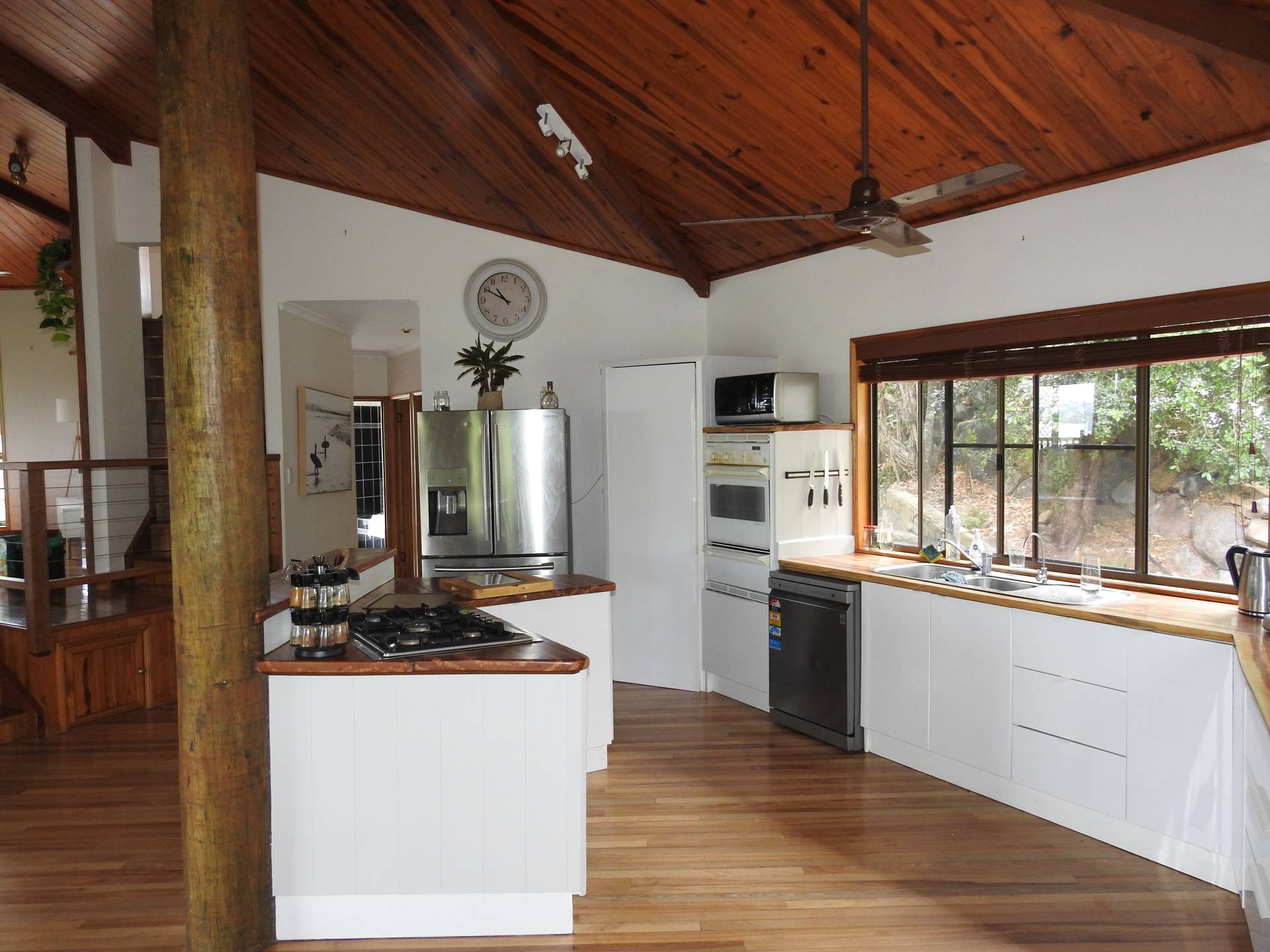 This beautiful home is set over multiple levels featuring, open plan living areas, high ceilings and breathtaking views with air conditioning and fans throughout. The spacious kitchen has dishwasher, gas cooktop and seperate oven.