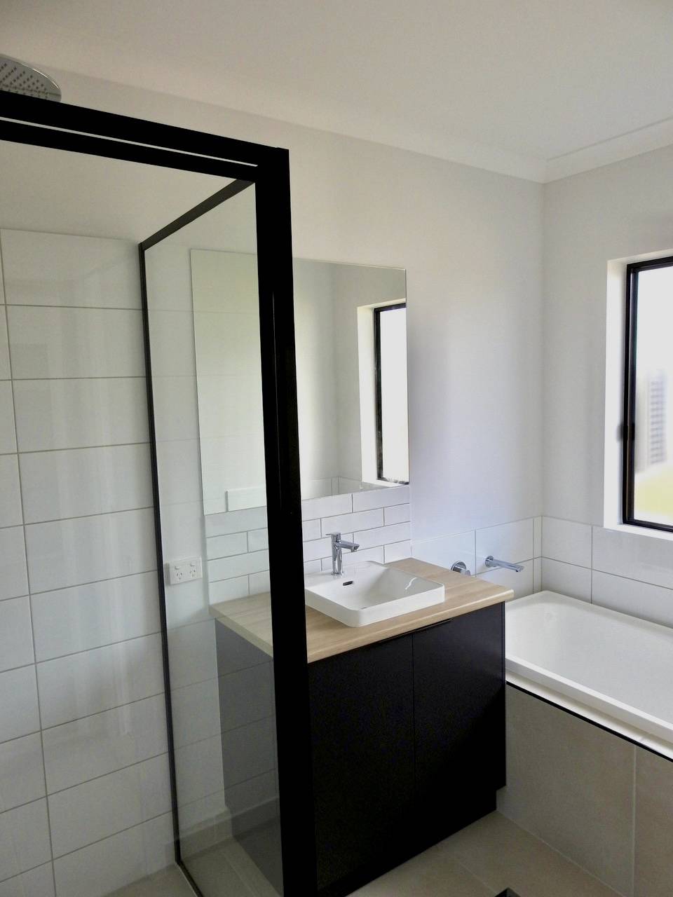Seperate bath tub and shower in the main bathroom
