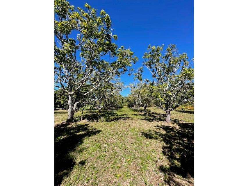 There are approximately 150 fruiting mango trees, lychee, jackfruit, bush lemon, and various other fruit trees