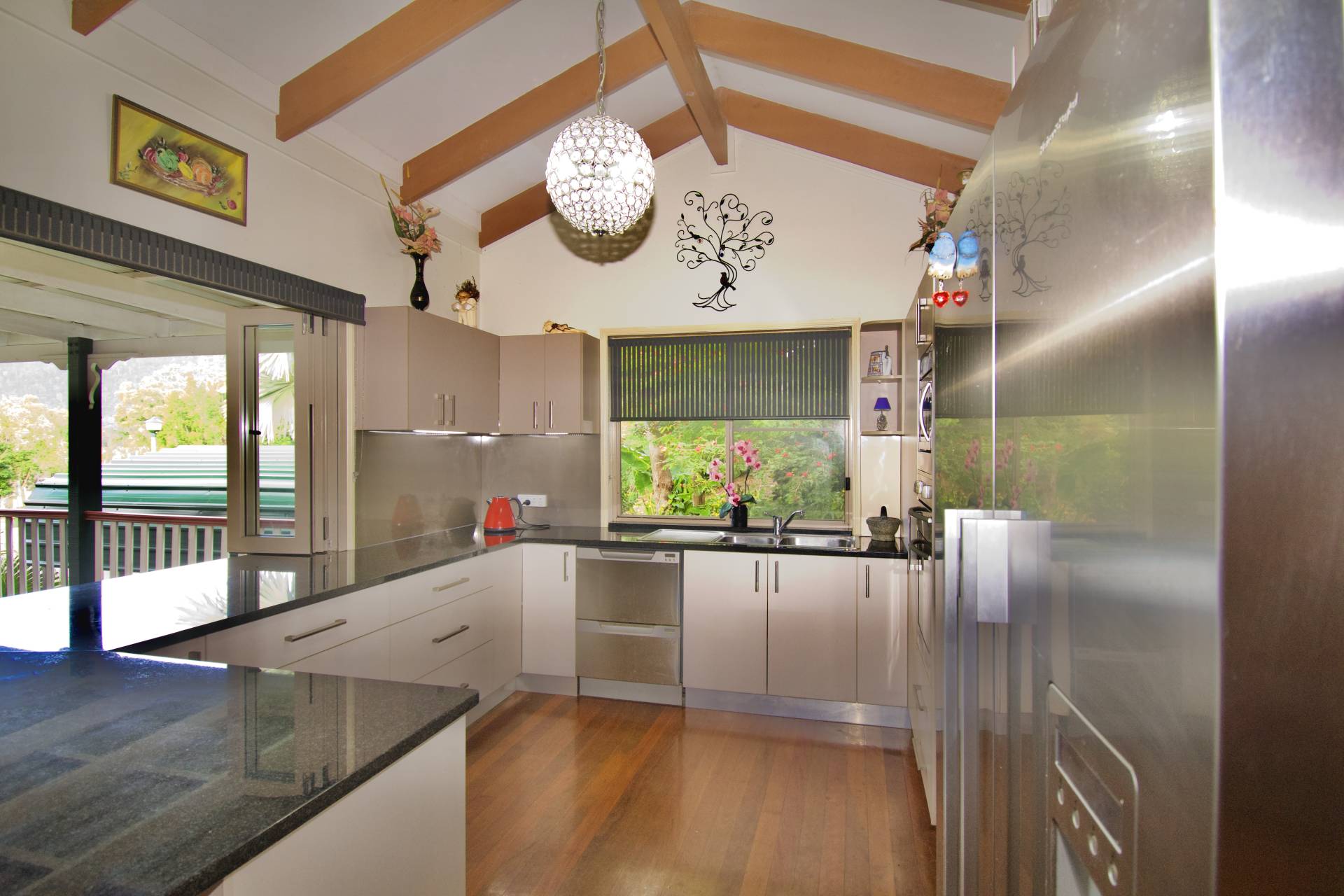 The large front deck has great valley views with an overview of the front yard, with an entrance to the master bedroom which has an ensuite and a walk in robe. With the pool right out the back door, an open deck and access to the shed and workshop area there is plenty of room for entertainment. An open living area with cathedral styled ceilings and polished timber floors, A beautiful kitchen with bifold windows looking out onto the front deck. The old fashioned spiral staircase leads to the downstairs rumpus and craft room with an attached bathroom and double lookup garage.